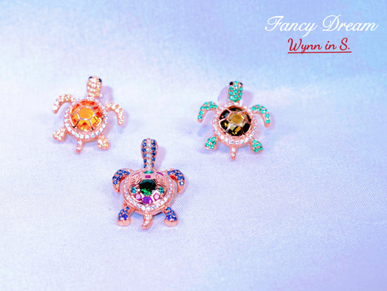 925 silver + 18k gold plating, 5A zircons; Rose gold colour, each turtle is customised to different colours, in stock we have one green turtle, one yellow turtle