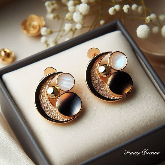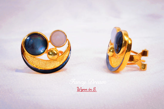 925 silver + 18k gold plating, black & white sea shells; Yellow gold colour